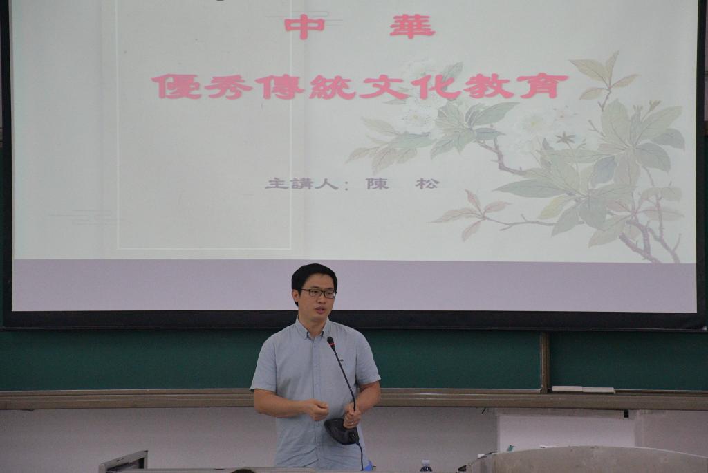 以文化人,凝心聚魂。为提升同学们的文学素养,学习和掌握思想精华,增长文学知识,英国beat365官方网站入口于9月17日下午三点于2-2开展“中华优秀传统文化教育”专题讲座。本次讲座由陈松博士主讲,2023级全体同学参与。