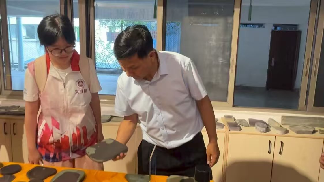 在乡村少年宫实践基地,团队首先参观苴却石砚文化体验工作坊,深入了解苴却石砚从选料、设计到雕刻的完整制作流程。现场陈列的精美砚台,展现了这一省级非物质文化遗产的艺术魅力。随后,传承团观看了小学生演奏非遗谈经古乐的视频。身着彝族传统服饰的孩子们,用京胡、三弦等乐器奏响《朝歌》等古曲。谈经古乐融合了江南的细腻与彝族的粗犷。生动诠释了非遗为民族文化传承注入青春活力。"通过学习谈经古乐,孩子们不仅掌握了传统乐器的演奏技艺,更深刻感受到了民族文化的魅力,增强了文化自信。”周天芳书记自豪地表示。