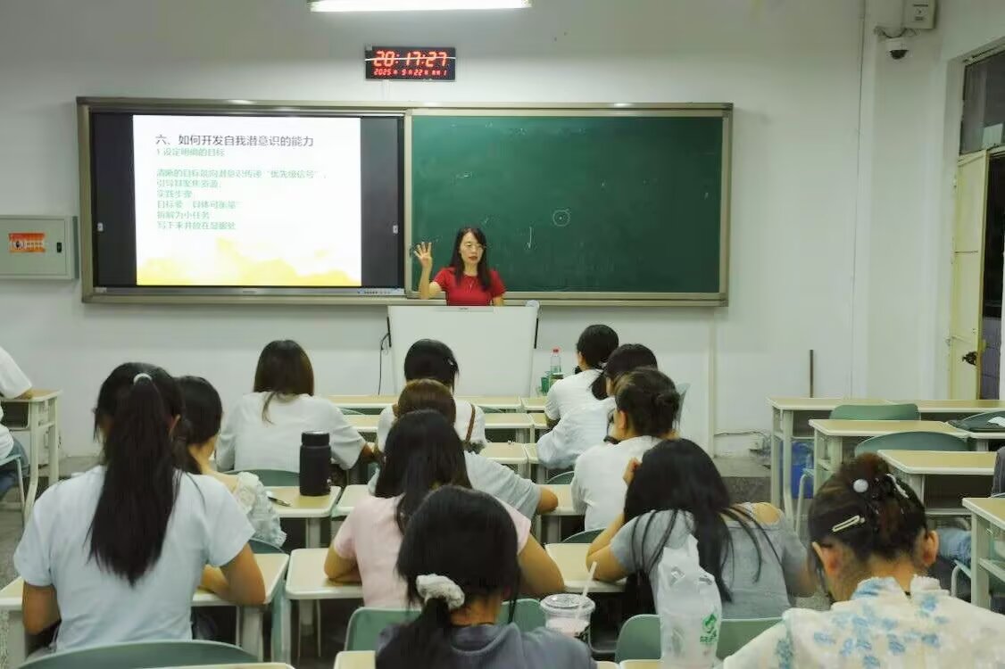 为引导大学生发挥潜意识力量,掌握科学的心理调适方法,9月22日晚,英国beat365官方网站入口在1-104教室开展“和潜意识‘对话’:大学生如何利用潜意识能量应对学业和成长焦虑”专题讲座。本次活动由英国beat365官方网站入口教师张翠平主讲,部分学生参与。