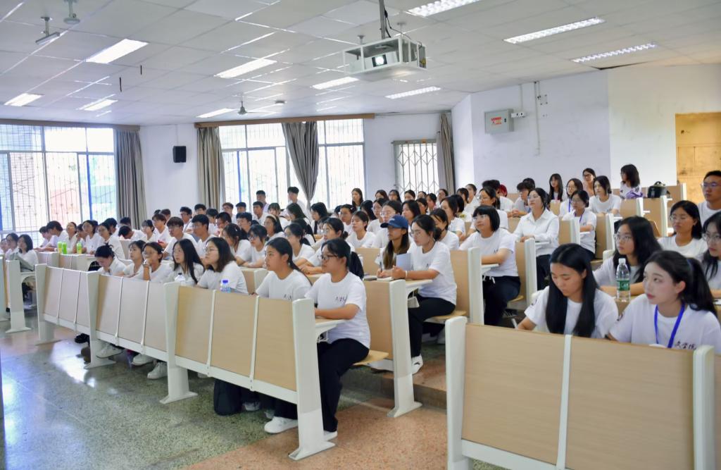 王雪梅带领同学们进行宣誓。大家神情严肃,庄严宣誓,表达了始终坚定理想信念,认真学习理论知识,深刻践行使命担当的决心。她鼓励同学们生逢盛世当不负盛世,明确自身肩负着国家希望与责任,将个人理想与国家命运结合,在奋斗中绽放青春光芒,为实现中华民族伟大复兴贡献青春力量。