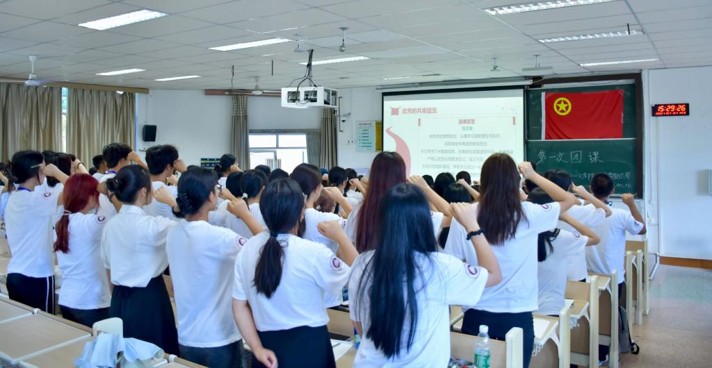讲解过程中,穿插着互动问答环节。“大家对中国共产主义青年团的认识是什么?”“新时代共青团的使命是什么?”等问题抛出后,同学们踊跃举手,结合所学积极作答,现场氛围热烈。