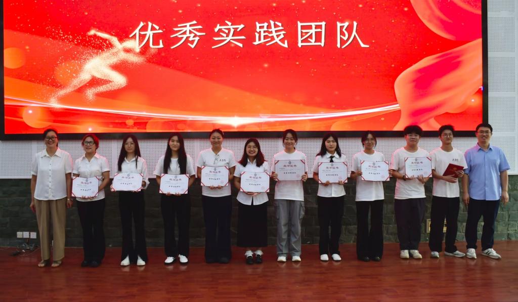 在热烈的掌声中,获奖的优秀团队代表与优秀个人依次上台领奖并合影留念,这不仅是对他们暑期实践工作的肯定,更是对他们积极投身社会实践的激励。