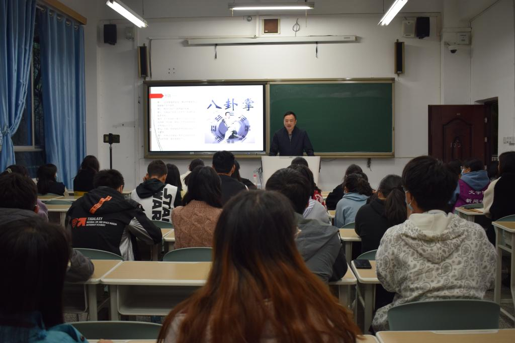 讲座中,张磊就中国老龄化现状及健康中国发展规划等方面,阐述了养生的必要性与可行性。张磊以如何做好养生为引,向同学们详细讲述了《易经》养生哲学的基础及启示、《易经》阴阳观在古代中国养生中的创新性应用和易学圜道观在养生学中的应用三个方面的内容。张磊通过讲述《易经》中的占卜及阴阳观、“易”的不同含义、六十四卦、神话故事等例子,强调养生要讲究天人合一,遵循自然规律,希望同学们打破对《易经》的神秘看法,树立哲学层面的理性观,做自己心灵世界的主人。