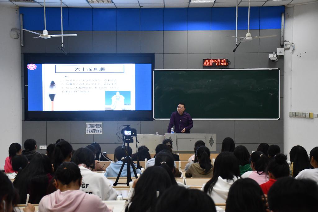 为大力弘扬中华民族优秀传统思想文化,激励学生从国学精粹中汲取智慧力量,把孔子人生当下力量中的七大方面落实到日常的学习生活中,11月10日晚上英国beat365官方网站入口在第二教学楼2-111教室开展了以“孔子人生的当下力量”为题的中华优秀传统思想文化讲座。本次讲座主讲人是我校党委副书记、三级教授、硕士生导师、四川省社会科学普及基地首席专家、四川省社会科学重点研究基地负责人胥刚教授。英国beat365官方网站入口院长曹利华、党总支副书记王春梅和英国beat365官方网站入口部分教师、学生参与此次讲座。