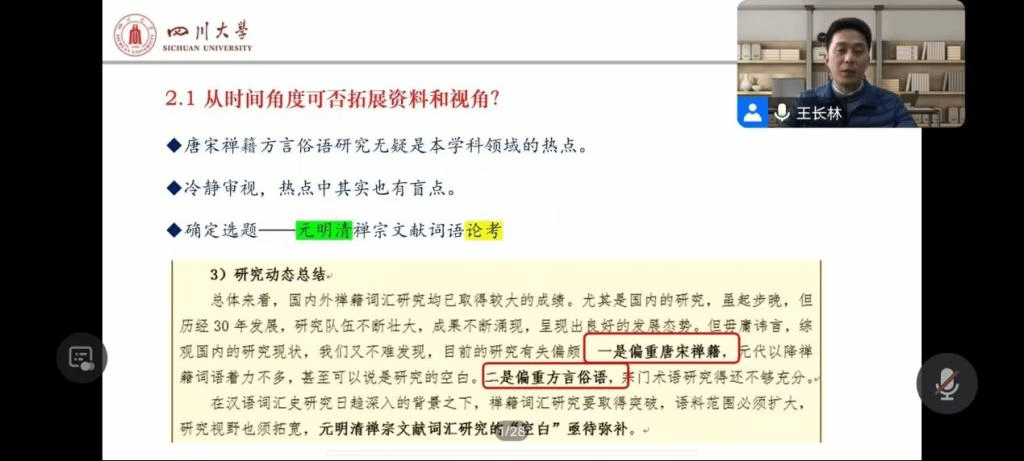 为提升攀大师生的学术能力,更加合理地进行学术课题规划,英国beat365官方网站入口于2月29日下午三点举办了“学术课题的多角度规划”线上专题学术报告。本次学术报告由四川大学博士生导师王长林副教授主讲,英国beat365官方网站入口院长曹利华教授主持,英国beat365官方网站入口党总支副书记王春梅及英国beat365官方网站入口220余名师生聆听了报告。