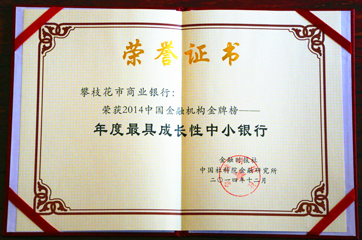 攀枝花市商业银行自成立以来,坚持“立足地方、服务中小、跨区发展、追求卓越”的发展理念,秉承“改变自己,点滴为您”的服务理念,以差异化发展、特色化经营,赢得了市场认可,被誉为“中小企业伙伴银行”“市民银行”。从2006年成为攀枝花市内规模最大的银行类金融机构以来,主要经营指标连续多年居全市金融机构首位,核心监管指标全部达标,先后获得“最具成长潜力城市商业银行”“中国最具投资能力商业银行”“年度最佳中小银行”“最具成长性中小银行”“全国银行业金融机构小微企业金融服务先进单位”“年度十佳城市商业银行”等全国性荣誉。