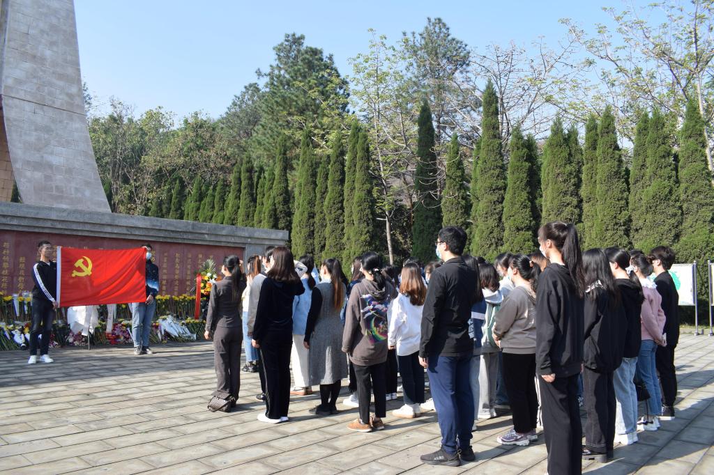 纪念碑前,全体师生庄严肃立,集体默哀,向先烈致以最崇高的敬意。仪式结束后,全体师生重温入党誓词。