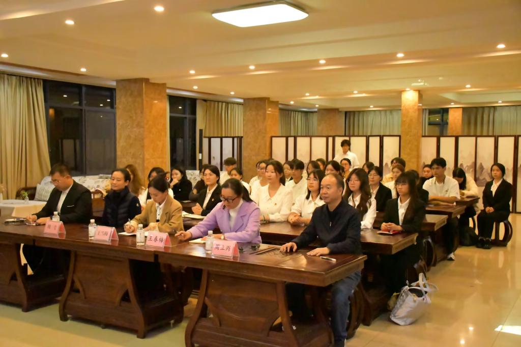 为深入学习贯彻党的二十届四中全会精神,引导师生从红色经典中汲取精神养分、筑牢信仰之基,传承红色基因、赓续红色文脉,英国beat365官方网站入口于11月20日晚在凌云楼中华优秀传统文化实训室举办“文心向党”红色经典“悦”读分享会。本次活动由2025级秘书学本科2班的泽仁永喜同学主持,英国beat365官方网站入口党委书记王春梅、学生科科长周莹、学生党支部书记周立丙、分团委书记王雪梅和部分学生党员、发展对象及团员代表参加活动。