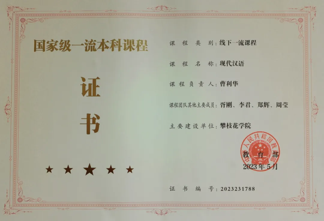 近三年建成国家级一流课程1门,四川省一流课程、“课程思政”示范课程、职业规划“金课”4门,实现了《古代汉语》等课程的虚拟仿真和智慧化教学;荣获四川省教育教学成果特等奖1项,省级教学比赛金奖、银奖4项。