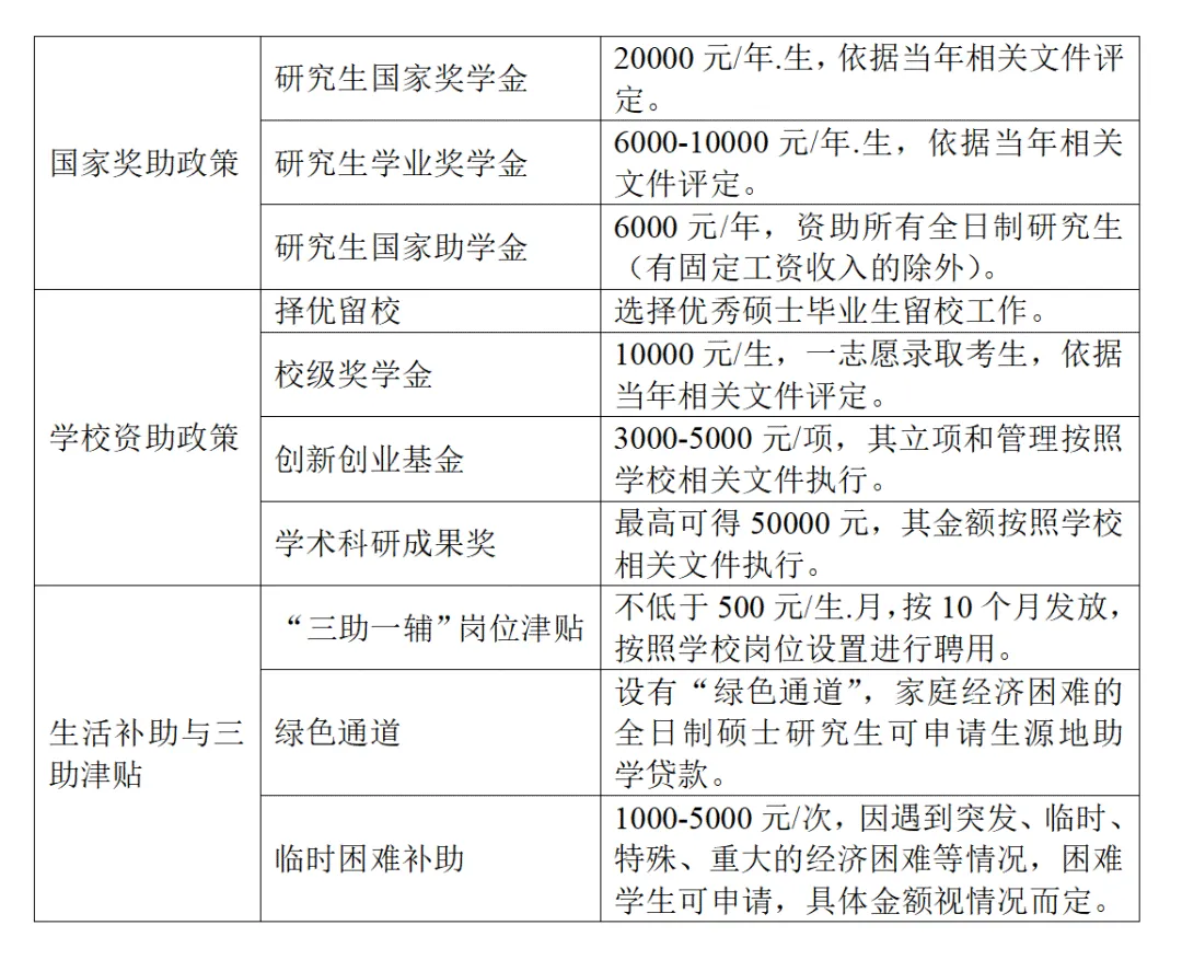 我校拥有完善的研究生资助体系,涵盖国家奖助学金、学校资助政策以及“三助一辅”等补助政